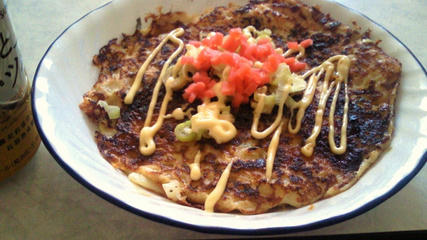 お好み焼き(チーズ)/煎茶/サッポロ 麦とホップ350ml/